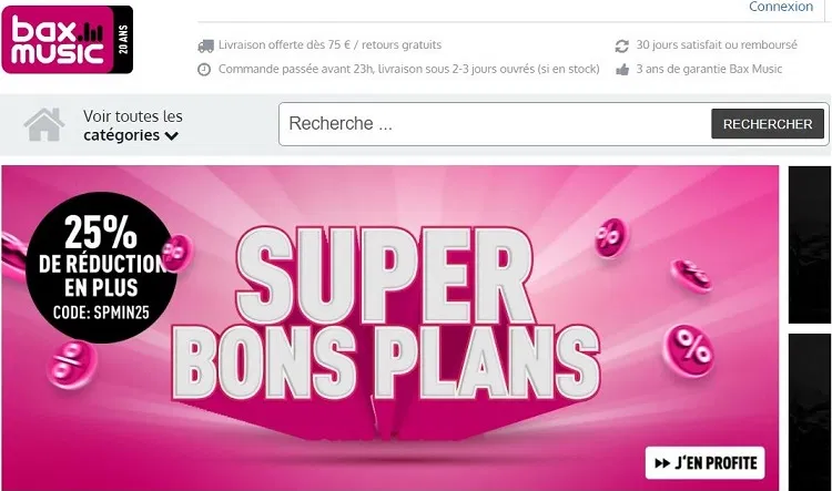 On constate assez vite que le design de Bax shop est plus simple que celui de Thomann.