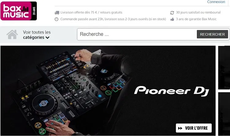 Le site met surtout l’accent sur le matériel de DJ et de sonorisation en proposant ces catégories en premier dans la liste.