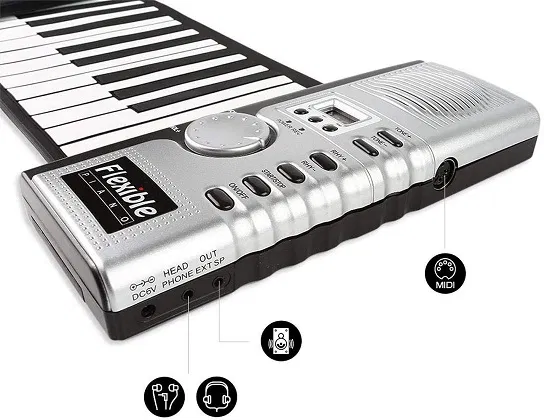 À signaler également la présence au sein de ce piano enroulable d’une fonction de transposition, ce qui vous aidera à élever ou abaisser, comme bon vous semble, la hauteur sonore des notes du clavier.